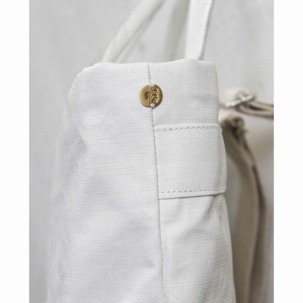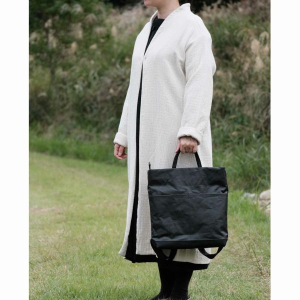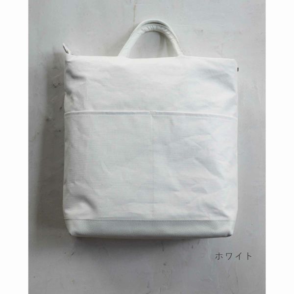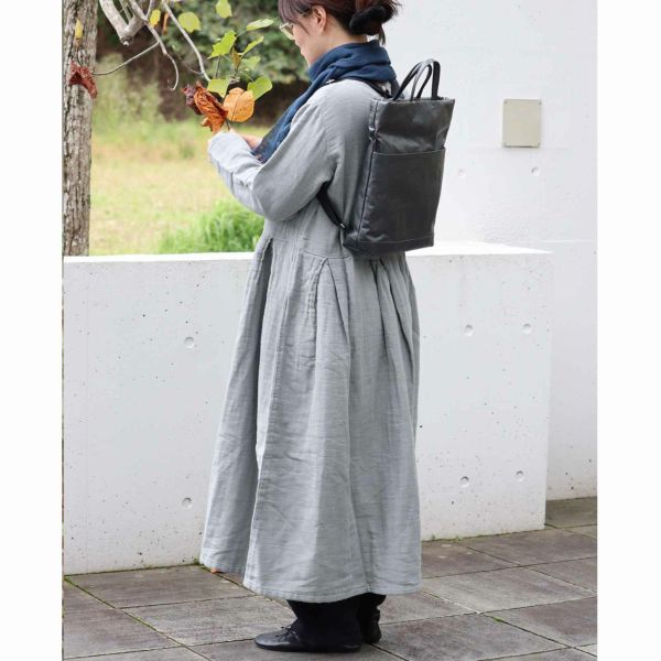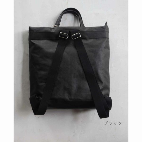 リネンの生地に樹脂加工を施したグレーズリネンのリュックサック型バッグ。トートバッグとしても、リュックとしても使える2wayデザインです。