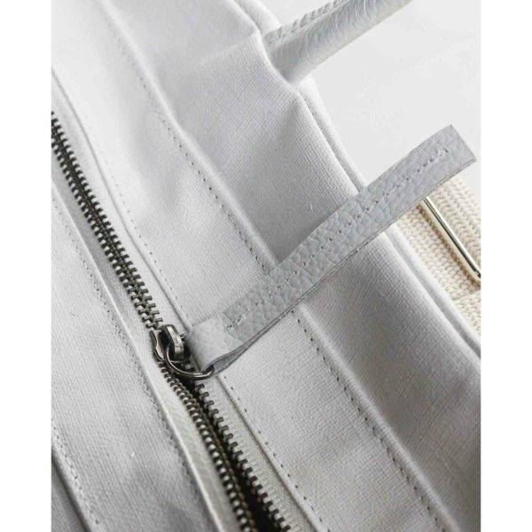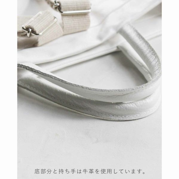 ナチュラルなリネンの雰囲気とは異なり、樹脂加工したツヤ感・ハリ感がどこか都会的な雰囲気を演出します。見た目以上に軽く深さがあるため、書類やラップトップPCなども入ります。