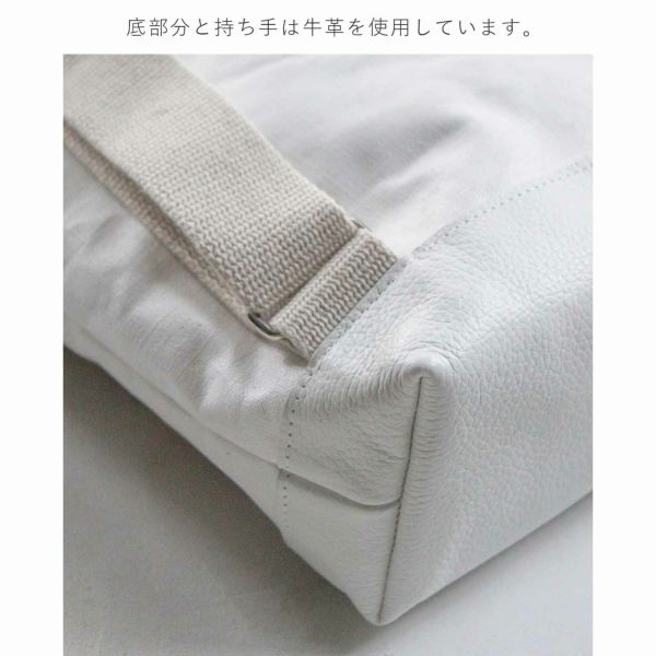 持ち手と底部分は牛革を使用しています。リュックとして使用する際に背中に沿うよう、まちは大きくしすぎないようスッキリしたデザインに設計しました。