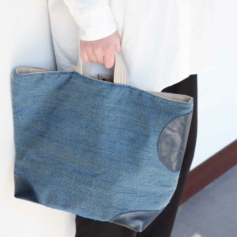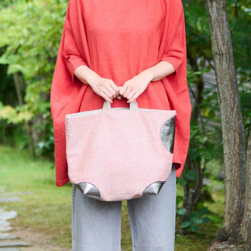 糸状にカットし、時間をかけて一段一段丁寧に織りあげました。
