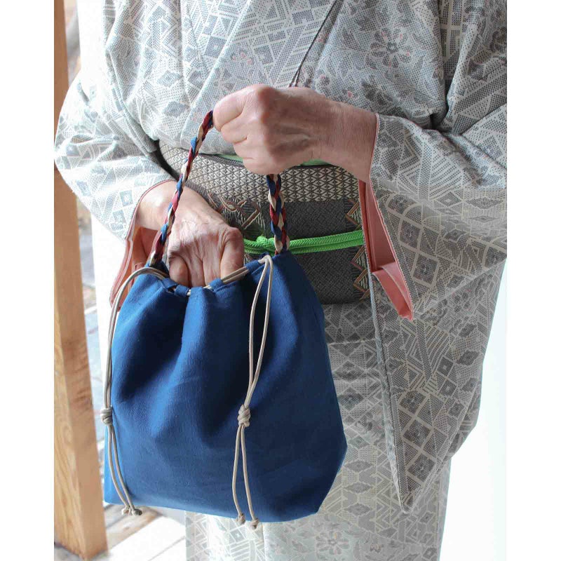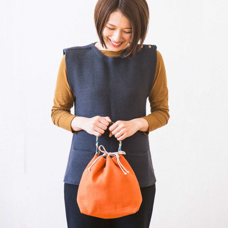 綿麻帆布巾着バッグ