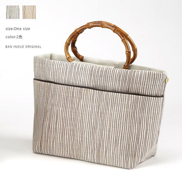 グレーズリネン竹手バッグ(大)