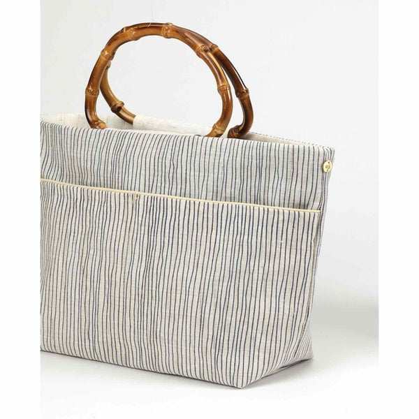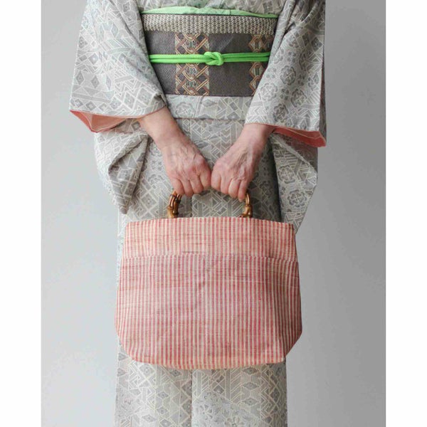 縞の竹手バッグ