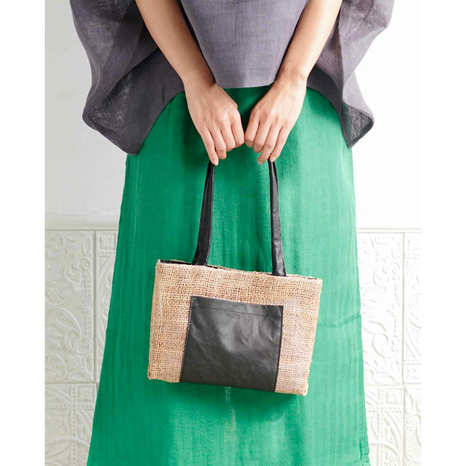 手織り麻竹手バッグ