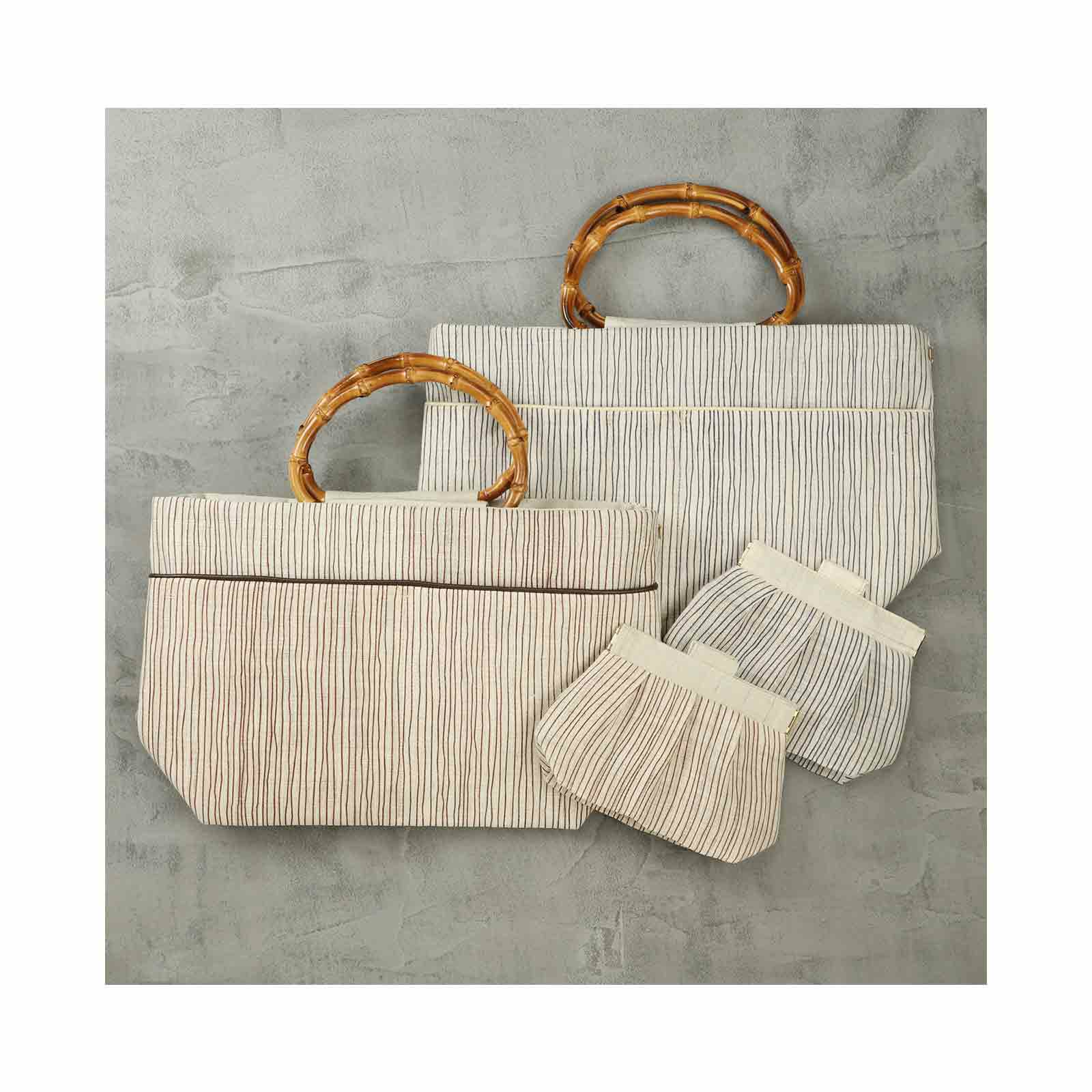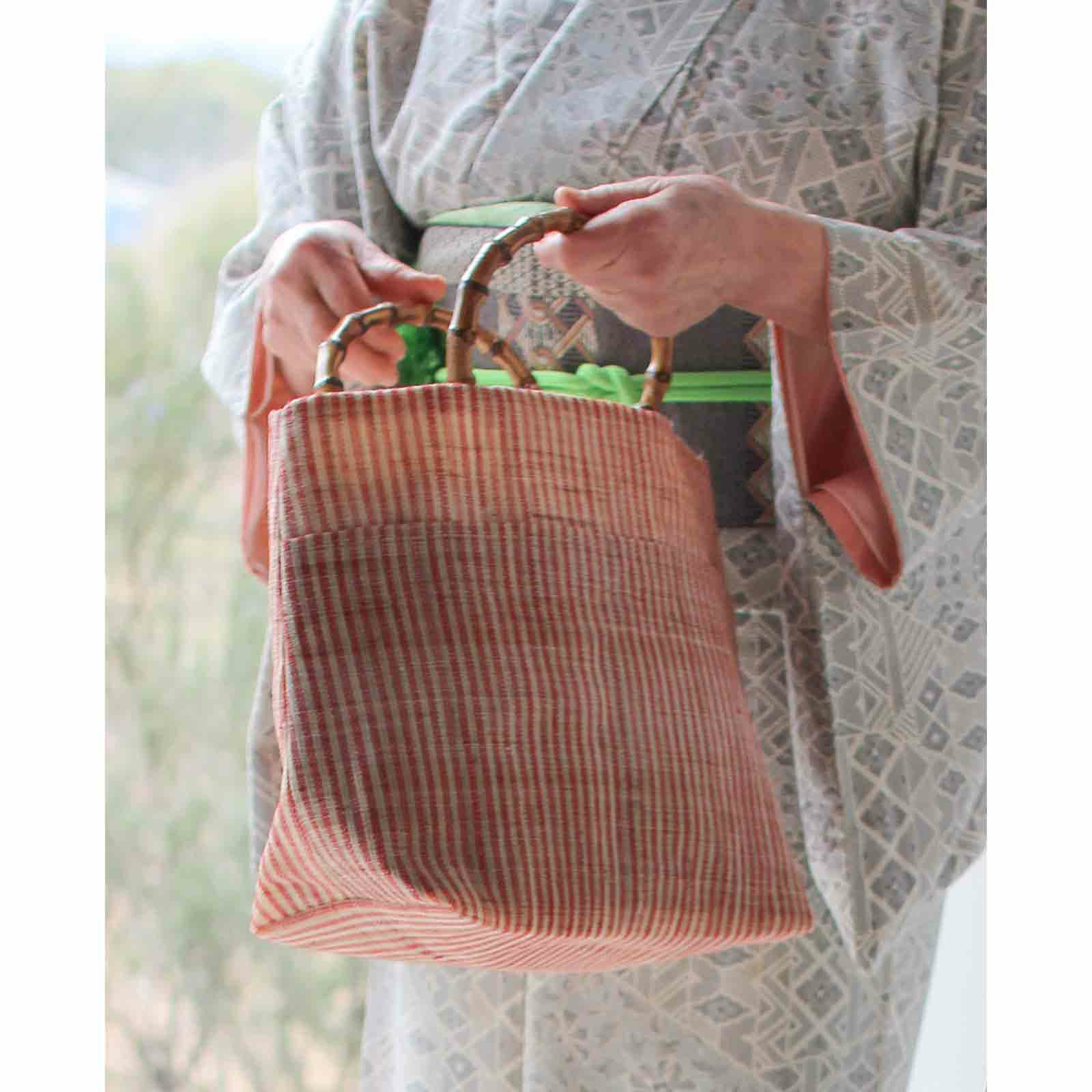 縞の竹手バッグ