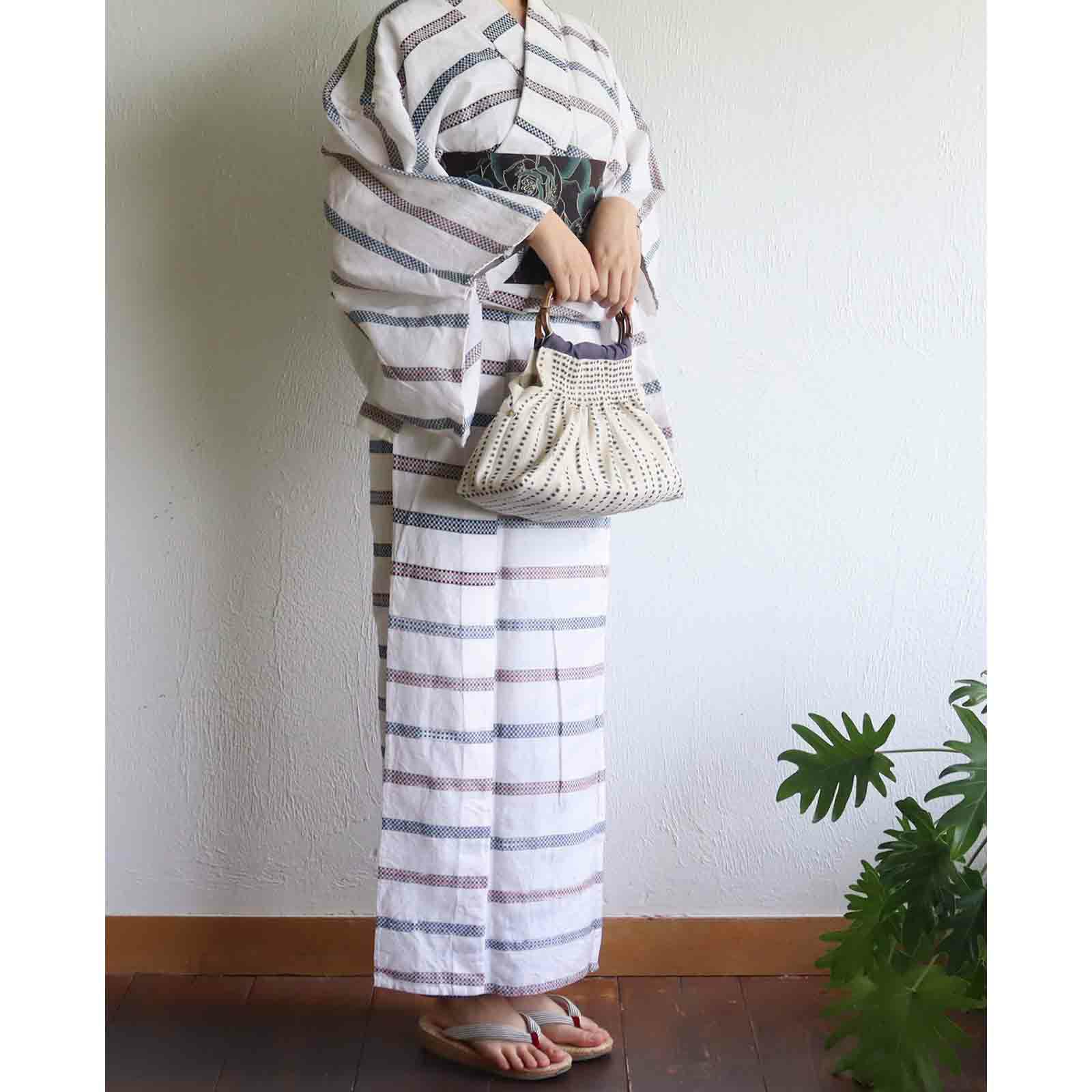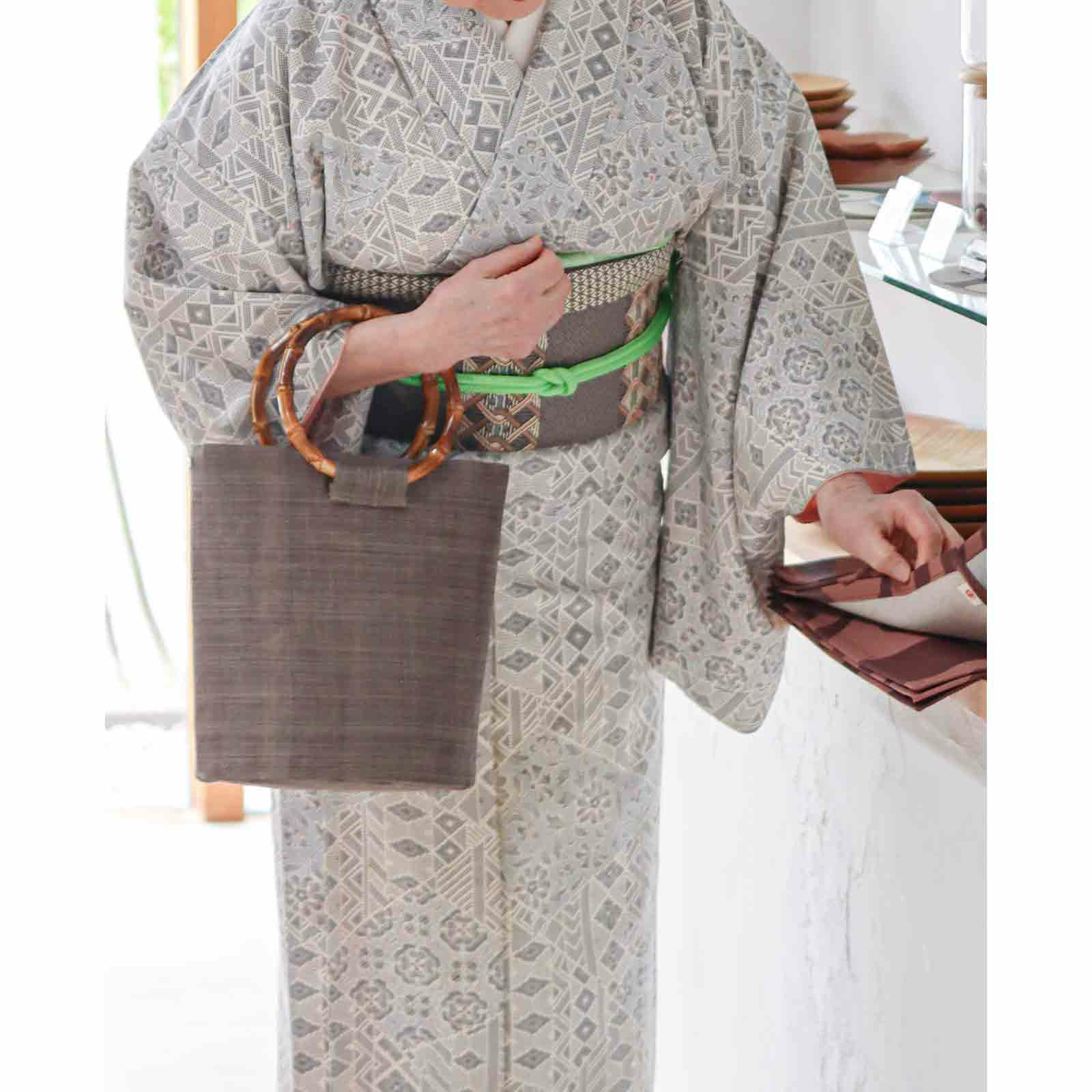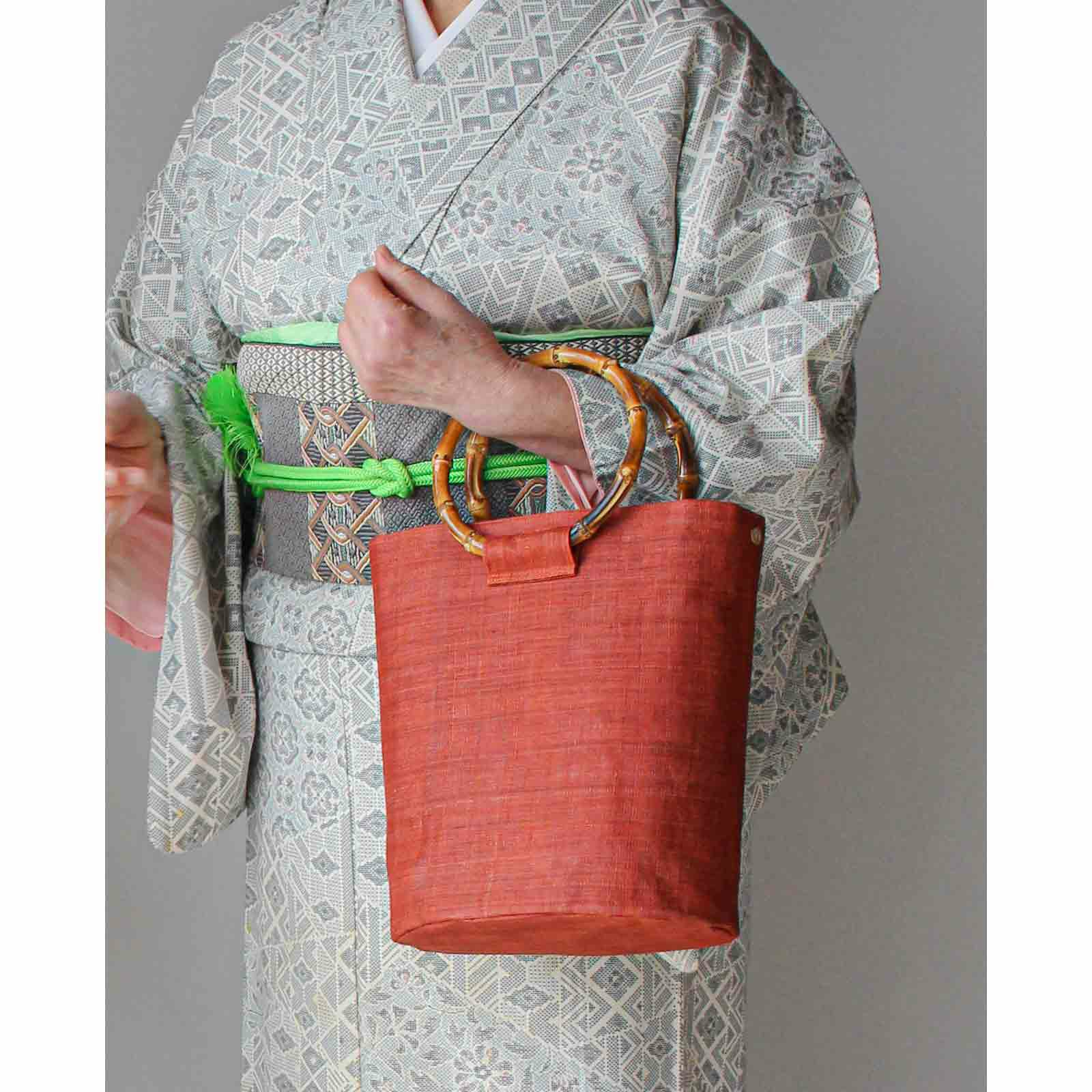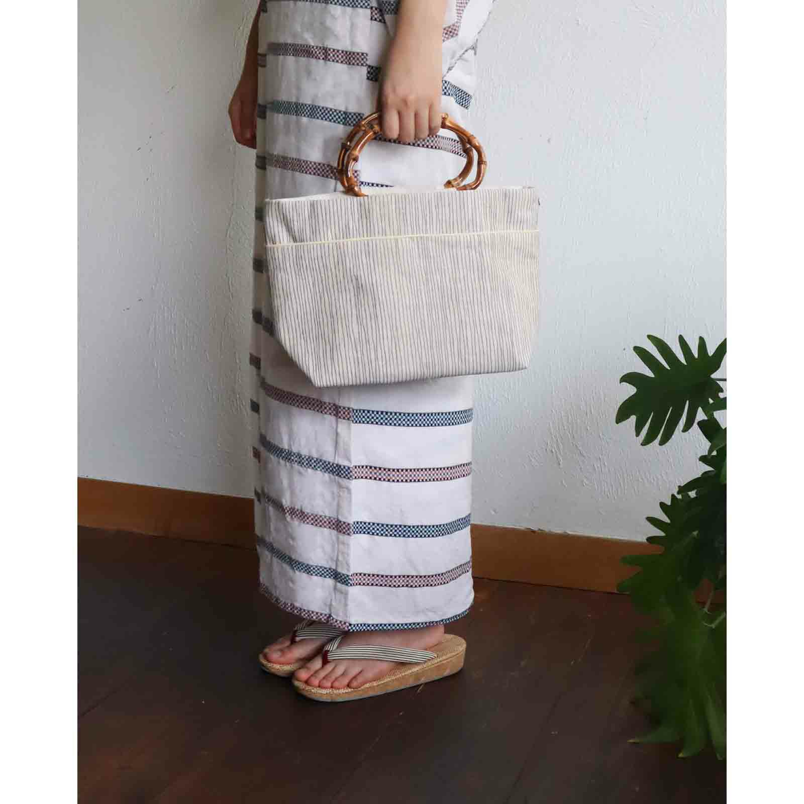 先染め竹手バッグ(大)