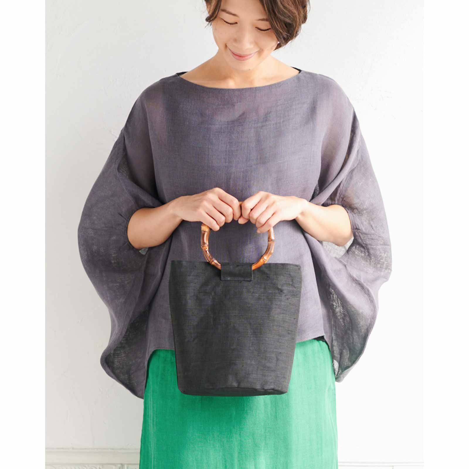 リネン浮織バケツバッグ