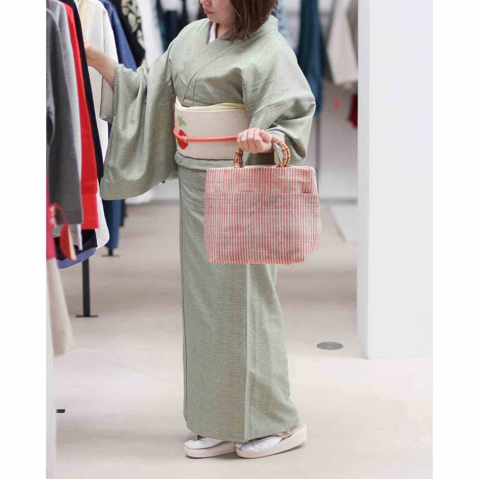 先染め竹手バッグ(小)