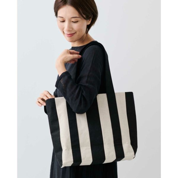 リネンストライプトートバッグ