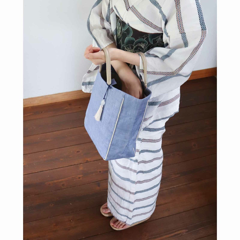 先染め竹手バッグ(大)