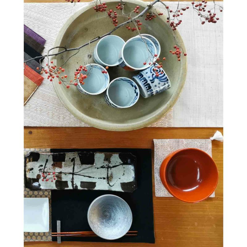 刺し子渦角マット
