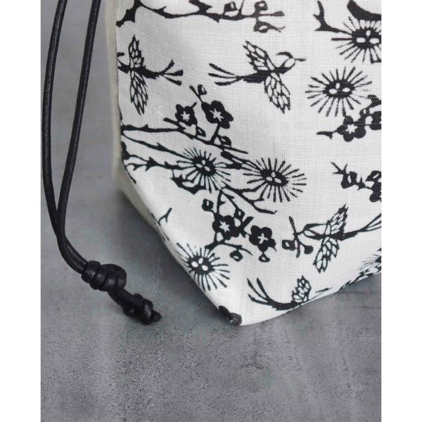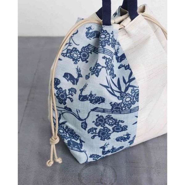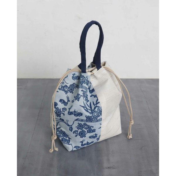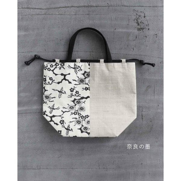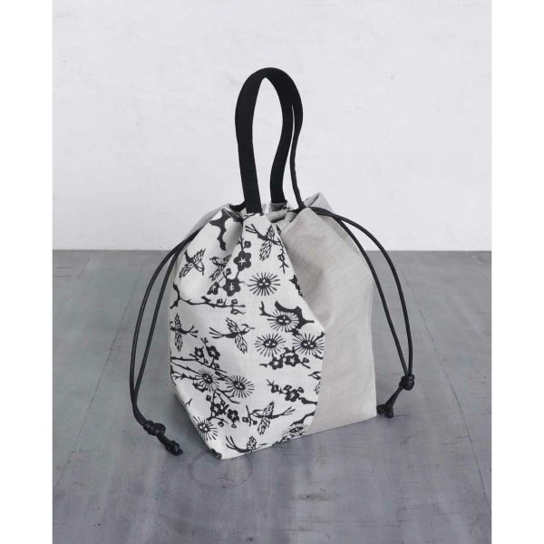 片身替りデザインがモダンな巾着タイプのバッグ。