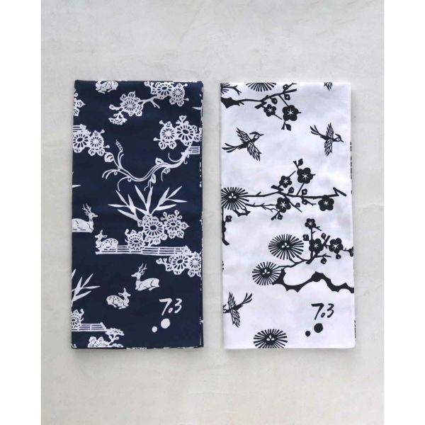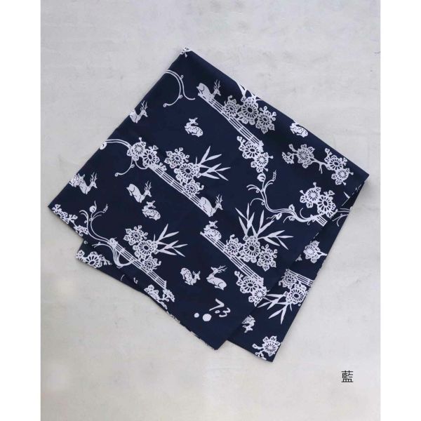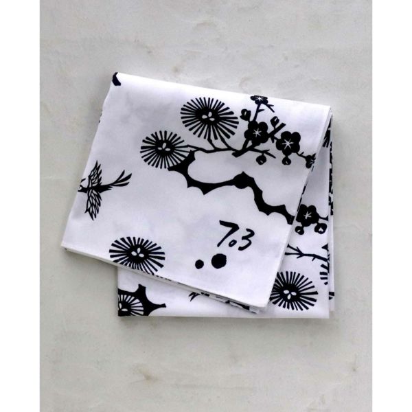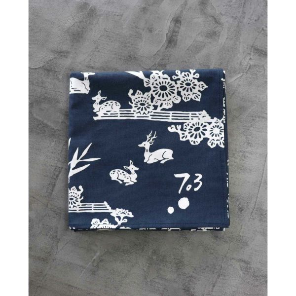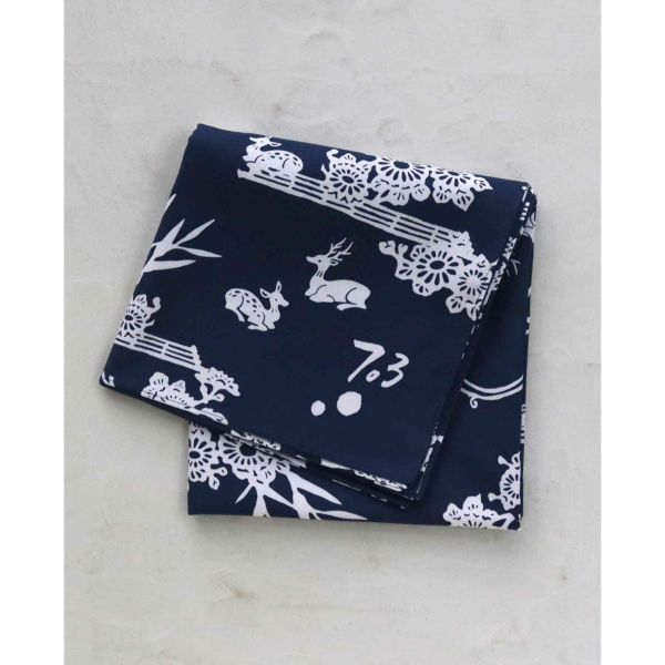 “奈良と沖縄、それぞれの土地で培われてきた文化的価値を再発見する”というコンセプトから、琉球紅型によく用いられる菊や松、梅、筏などを配置し、その中に奈良の鹿や正倉院文様に用いられる花食い鳥・蔓をあしらいました。