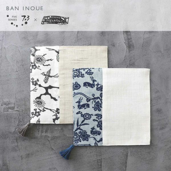 河瀨さんゆかりの地である沖縄の伝統技法「紅型」は、独特の美しさに心を奪われます。日常にも取り入れやすく、よりモダンなデザインがあれば…との発想から、沖縄県北部・今帰仁村で琉球紅型・藍型を手掛ける紅型工房ひがしやと、奈良の井上企画・幡を繋ぎました。
