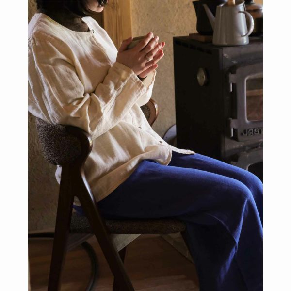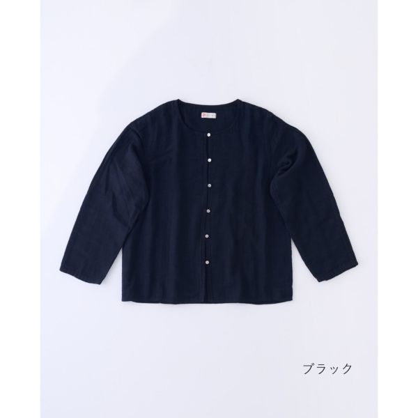 ・前あきは、貝ボタン(奈良県産)と共布ループをつけた繊細な仕上げ。