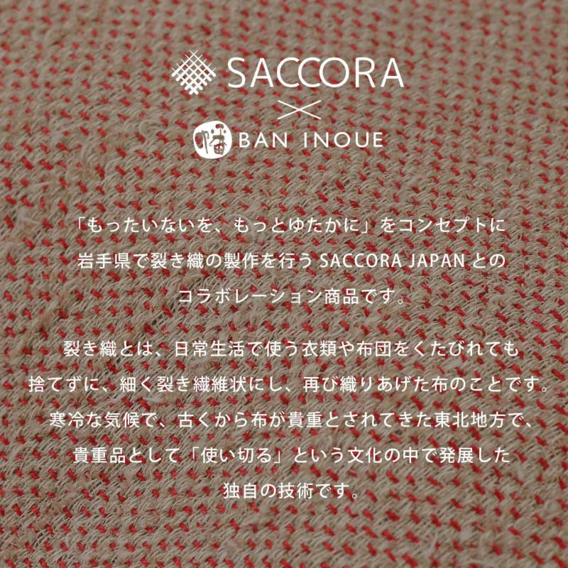 BAN INOUEの「裂き織」シリーズは、蚊帳の日常着を作る過程でどうしても出てしまうあまり布を、糸状にカットし、時間をかけて一段一段丁寧に織りあげました。