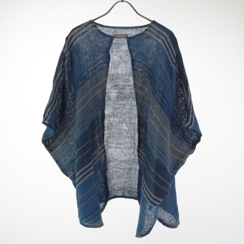 綿100%の糸をマルチボーダー柄の蚊帳生地に織り上げてつくったワイドカーディガンです。