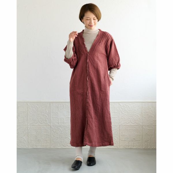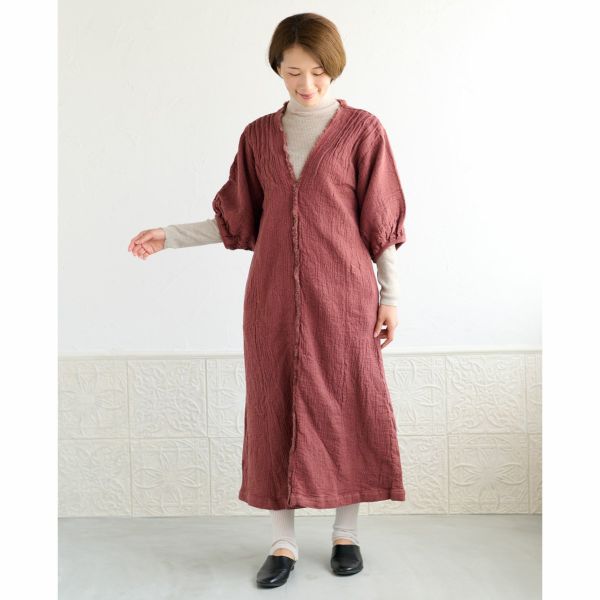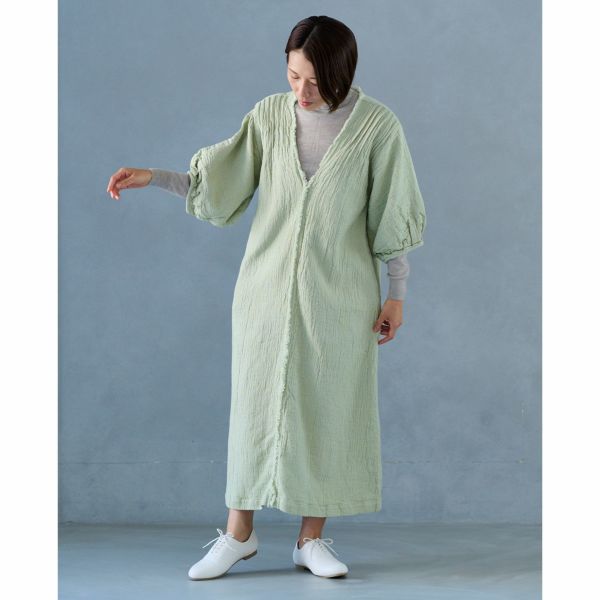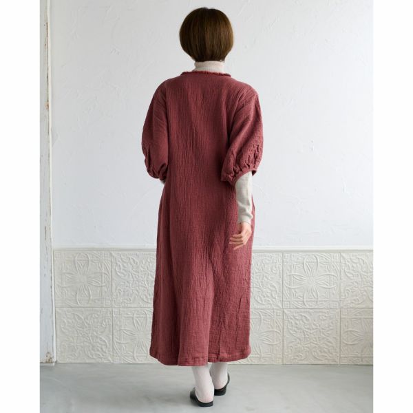 ボリューム感のある袖が可愛らしい、ゆったりとしたシルエットのロングワンピース。