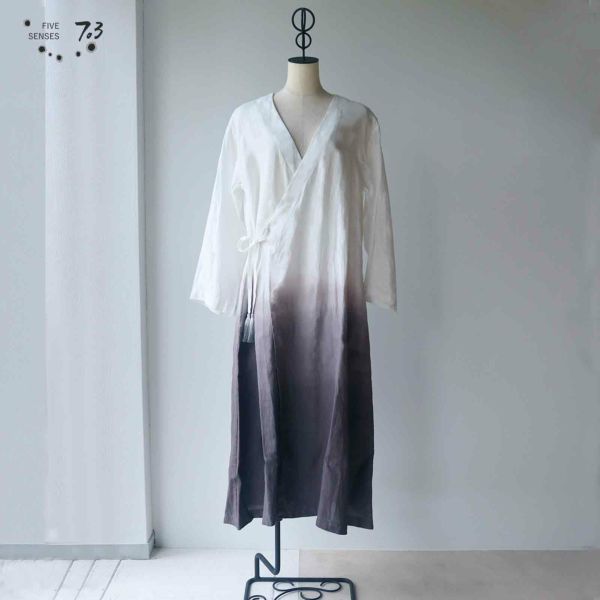 とろみのあるリネンの風合いにカシュクールデザインのワンピースです。