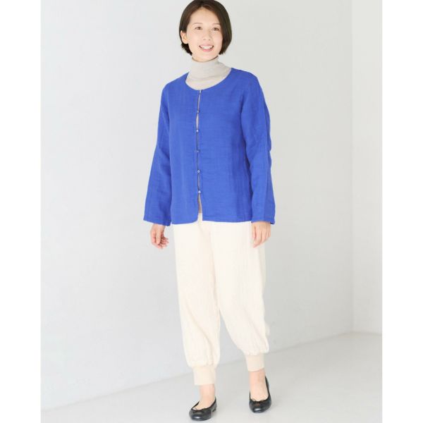 ・前あきは、貝ボタン(奈良県産)と共布ループをつけた繊細な仕上げ。