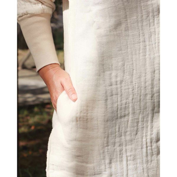 生地には凹凸感が特徴のスラブ糸を蚊帳織りで仕上げた、独自開発の「スラブのかや」を新採用。蚊帳の特徴であるやわらかい着心地はそのままに、綿100%ならではの人肌のような心地よい保温性を実現しました。
