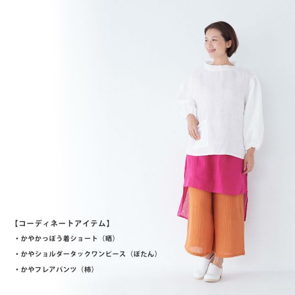 蚊帳生地は織り目が粗い素材のため、縫製後に行う製品洗いの過程で生地が収縮することにより、お届け時にサイズ表記から3cm程度の個体差が生じる場合がございます。収縮の程度は色によっても異なります。また、ご家庭でのお洗濯や使用により、さらに寸法変化が生じます。ご理解のほどよろしくお願いいたします。 表面のシワは蚊帳生地特有の風合いとしてお楽しみください。