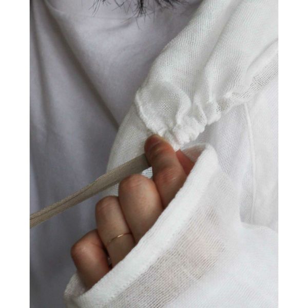 蚊帳生地は織り目が粗い素材のため、縫製後に行う製品洗いの過程で生地が収縮することにより、お届け時にサイズ表記から3cm程度の個体差が生じる場合がございます。収縮の程度は色によっても異なります。また、ご家庭でのお洗濯や使用により、さらに寸法変化が生じます。ご理解のほどよろしくお願いいたします。 表面のシワは蚊帳生地特有の風合いとしてお楽しみください。