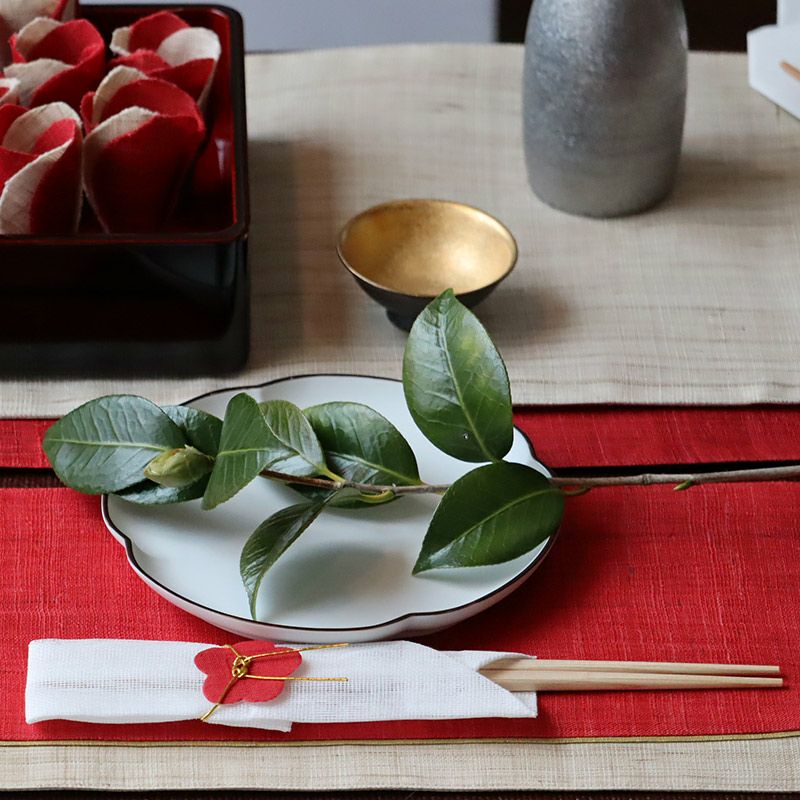 慶事にふさわしい、鮮やかな赤の「くれない」色と、凜とした白の「晒」色をセットにしています。