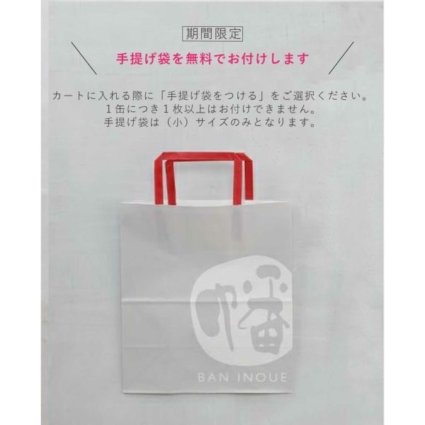 BAN INOUEオリジナルのラッピングで御祝事や御礼・弔事など、用途に合わせた進物包装を承ります。 包装をご希望の商品と一緒に、ラッピング用品をカートに入れてご購入をお願いします。