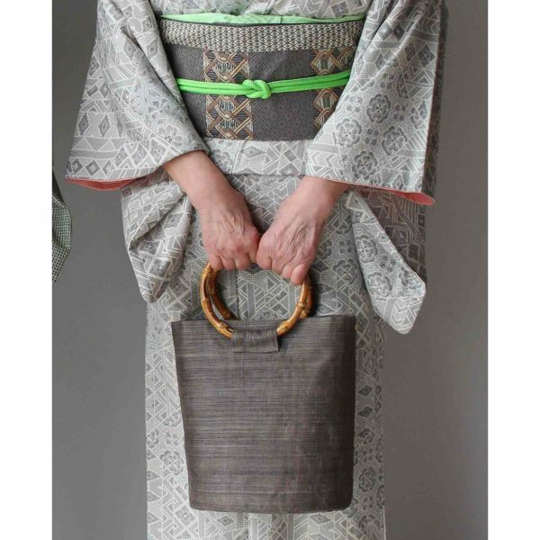 手織り麻と竹手を使ったハンドバッグです。