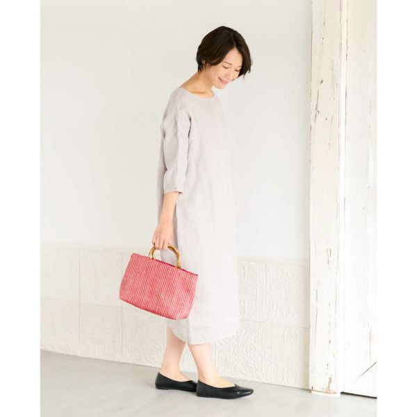 縞や格子の柄に織り上げた麻と竹手を使ったハンドバッグです。
