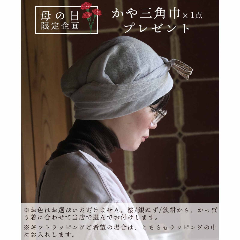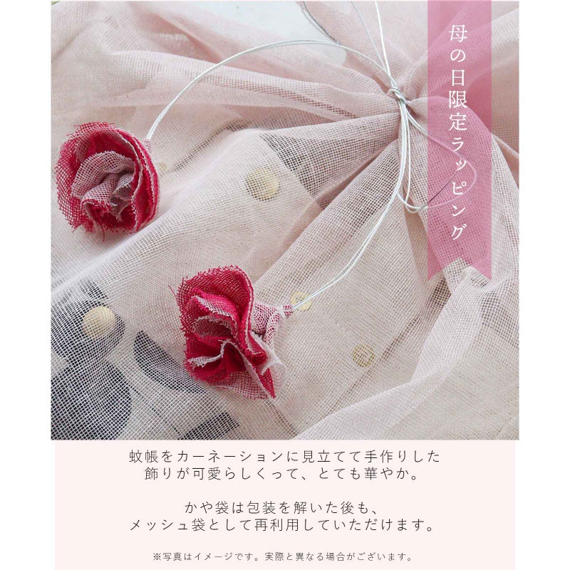 蚊帳生地は織り目が粗い素材のため、縫製後に行う製品洗いの過程で生地が収縮することにより、お届け時にサイズ表記から3cm程度の個体差が生じる場合がございます。収縮の程度は色によっても異なります。また、ご家庭でのお洗濯や使用により、さらに寸法変化が生じます。ご理解のほどよろしくお願いいたします。 表面のシワは蚊帳生地特有の風合いとしてお楽しみください。