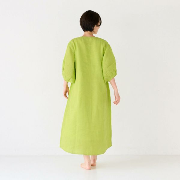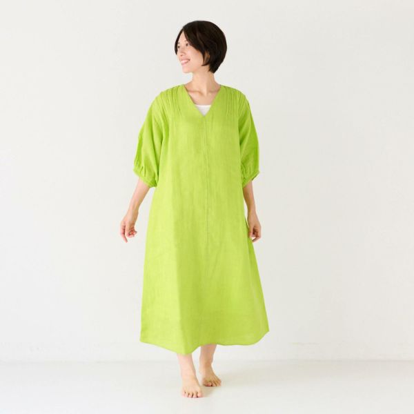 ぽわんと膨らんだ袖口がかわいい、 マキシ丈のワンピース。 細かなタックやAラインシルエットが、 体型をふんわりとさりげなくカバーしてくれます。
