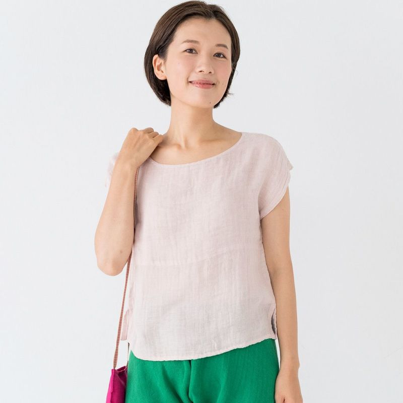 このところの暑すぎる日本の夏にも、これなら耐えられそうです。風通しがよく、汗も吸ってくれて気持ちが良い。サクラは、なんとも言えず優しく味のある色で、大好きになりました。旧タイプのこちらは、やはり襟ぐりの開きが大きく、下着が見えるのが気になります。