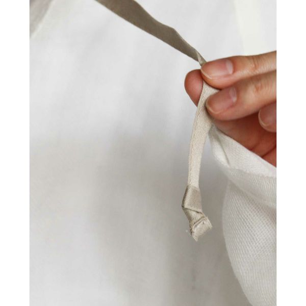 • お洗濯の際は必ずネットをご利用ください。乾燥機は使用しないでください。干す前にひっぱると生地の糸がスリップし、品質を損なう原因になります。 アイロンをかける場合も無理なくシワを伸ばしてください。天然繊維のため、多少色落ちする事があります。