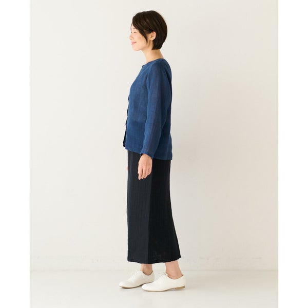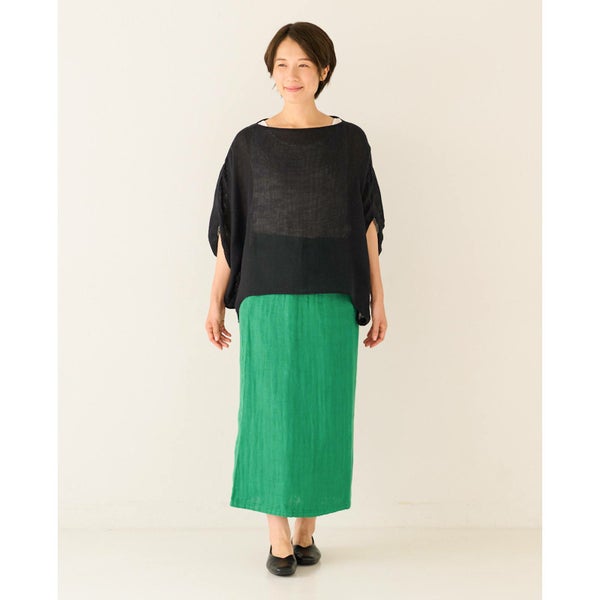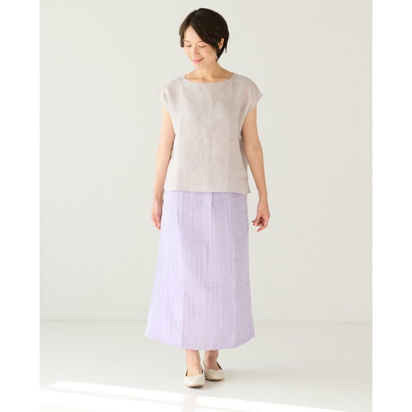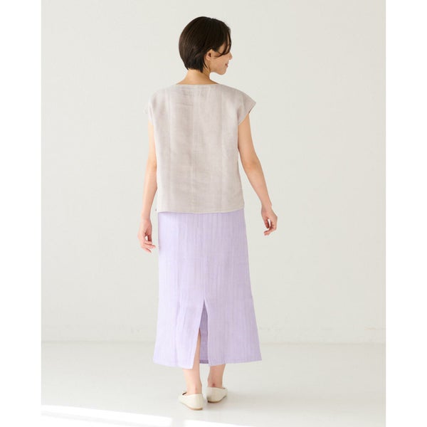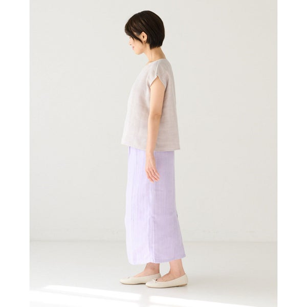 縦のラインがスタイルをすっきりと見せる 上品で大人なロング丈スカートです。 蚊帳4重仕立てで比較的透けにくくなっています。 スリットが入っているので、 タイトめなシルエットでも 足さばきがよいのが嬉しいポイント。