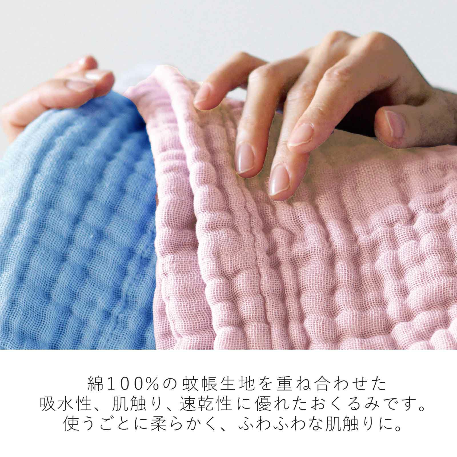また細い繊維同士が絡み合うことで、さらに肌なじみよく、ふんわりと軽く空気を含んだ素材に変化していきます。敏感肌の方やお子様にも安心してお使いいただけます。