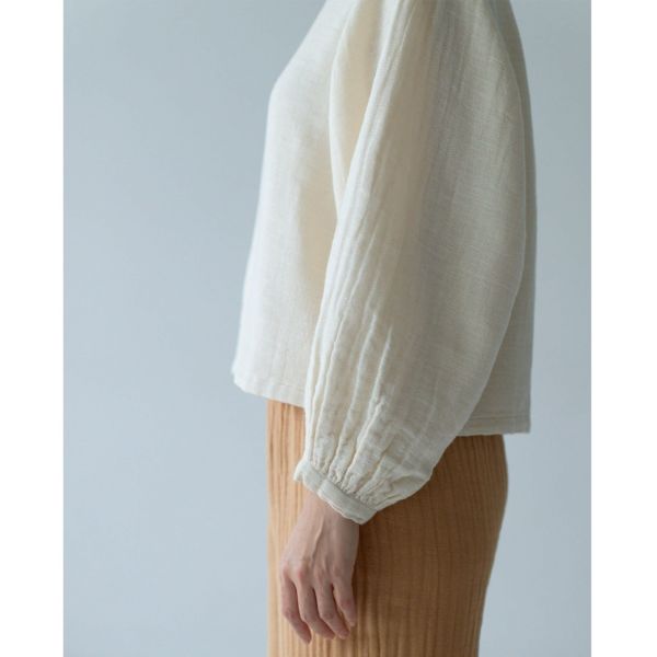 表情豊かなスラブ糸で織り上げた蚊帳生地を使用したトップス。