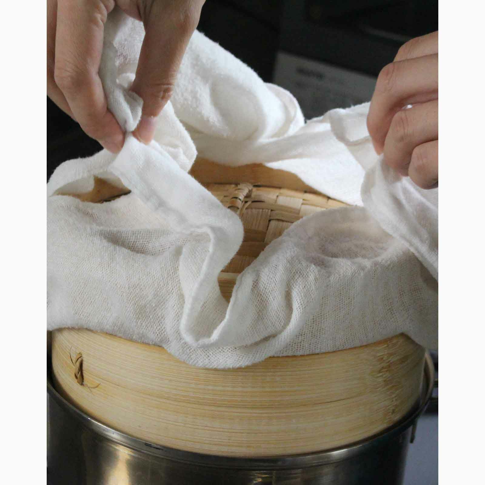 最初は生地目がずれないように「でんぷん糊」をつけていますが、洗っていくとふわふわに。