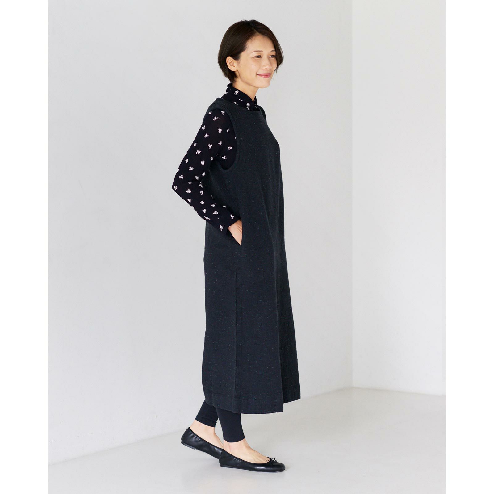 ・タイツやブーツを合わせてスッキリと。