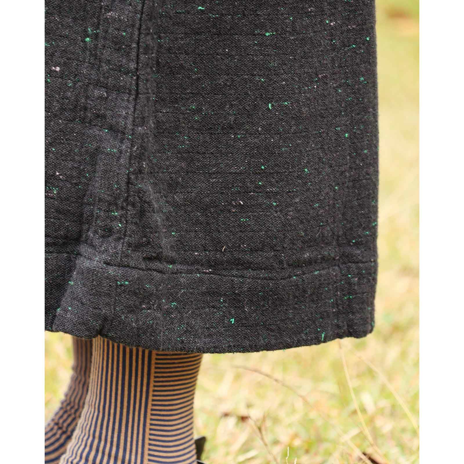 「蚊帳生地再生プロジェクト」から生まれたこの生地は、残布や古着を一度、ほぐし、糸にし、こちらを緯糸(よこいと)に使い、二重織にしたので、合格点の温かさ。