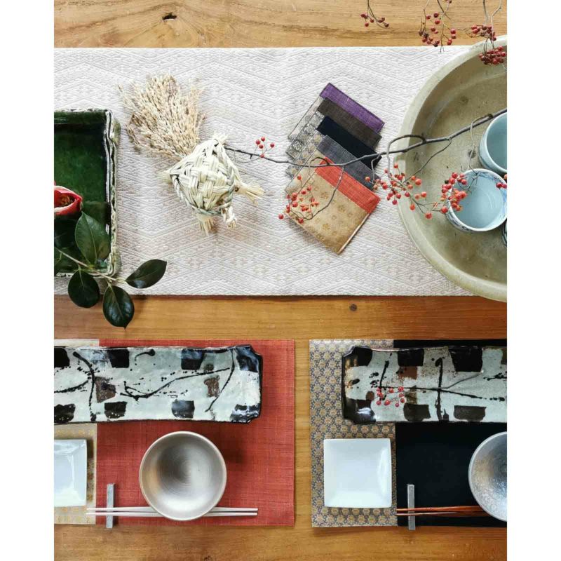 名物裂のしっとりした柄と手紡ぎ・手織り麻が組み合わさった、上質なこだわりのランチョンマットです。