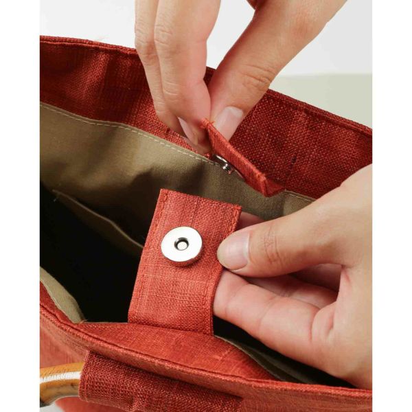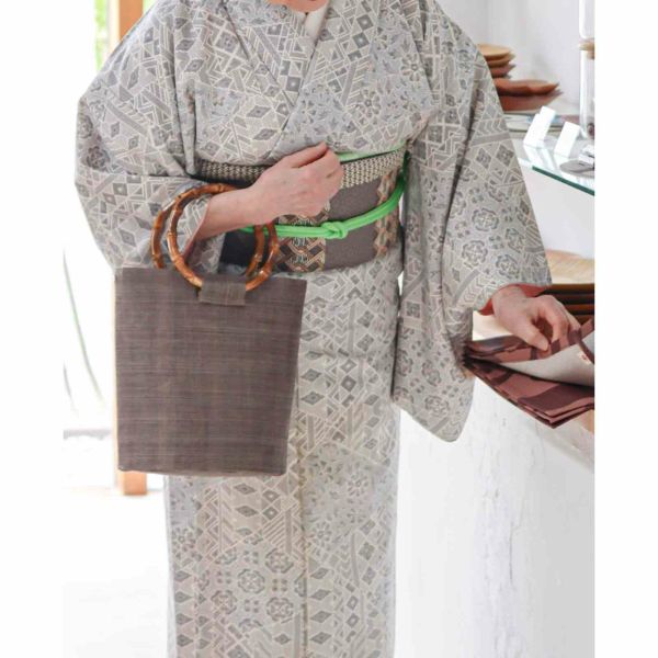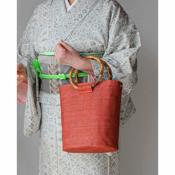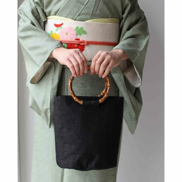 手織り麻と竹手を使ったハンドバッグです。