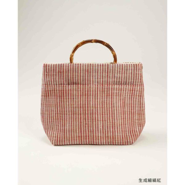 縞や格子の柄に織り上げた麻と竹手を使ったコンパクトなハンドバッグです。