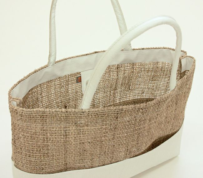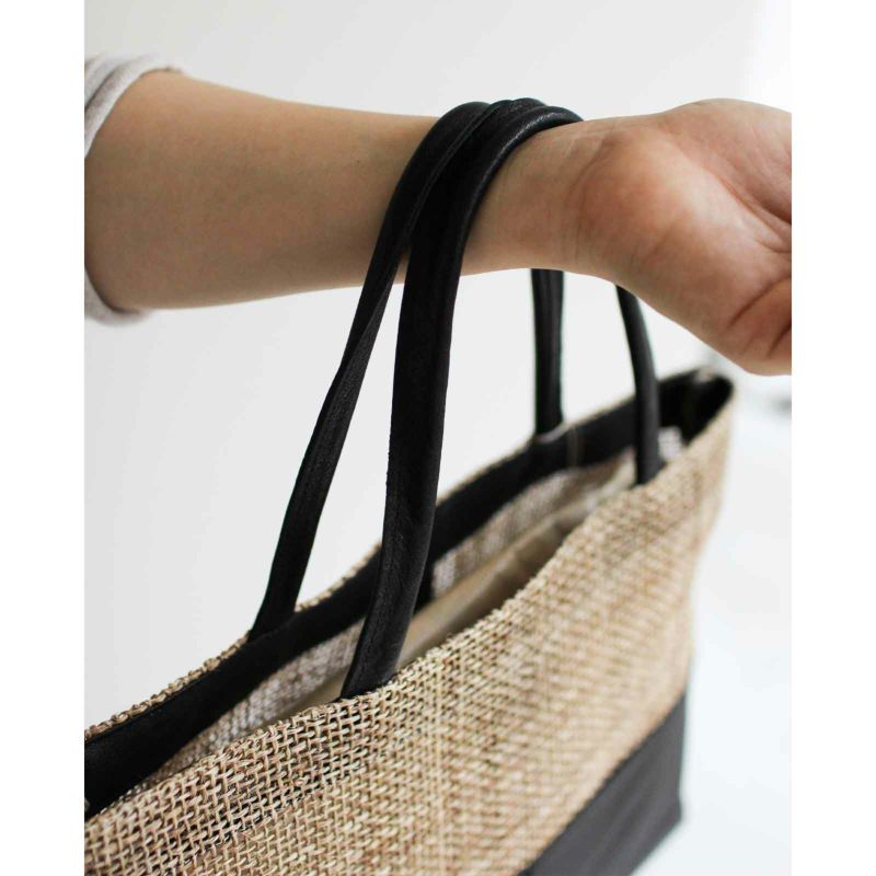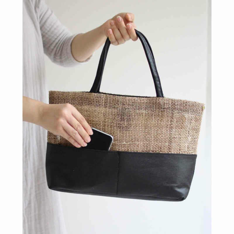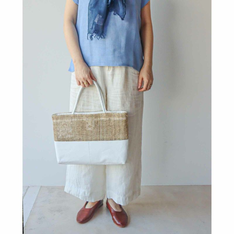 ざっくり織り上げた麻生地や竹手など異素材と組み合わせ、質感で遊んだバッグはデザイン性抜群。
