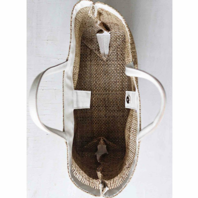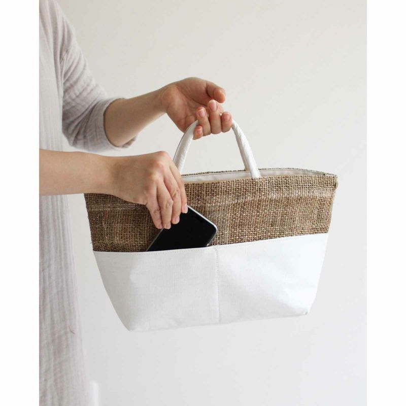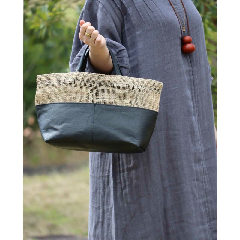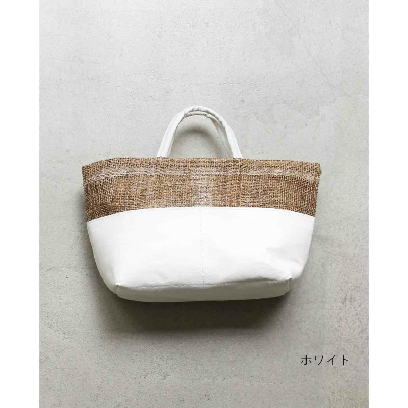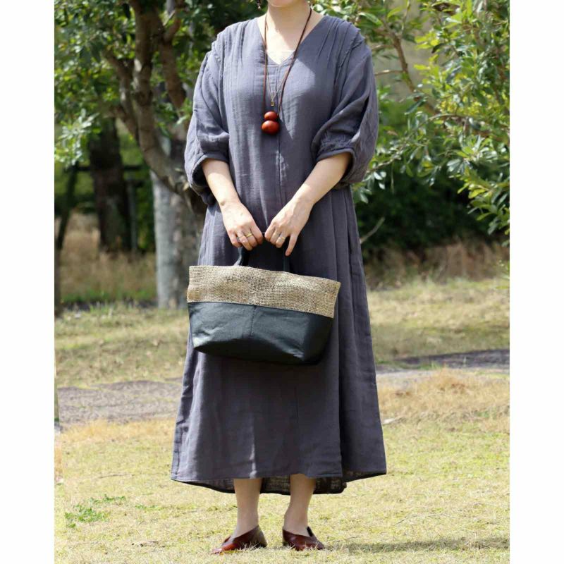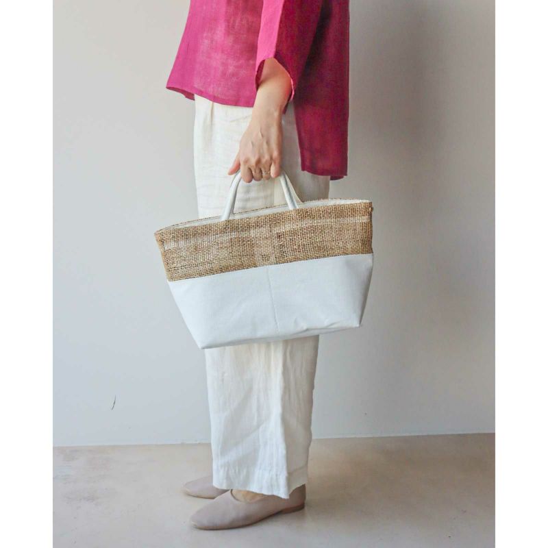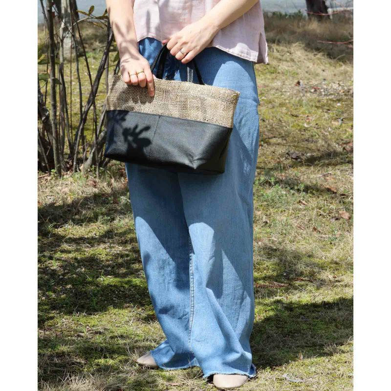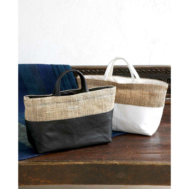 ざっくり織り上げた麻生地や竹手など異素材と組み合わせ、質感で遊んだバッグはデザイン性抜群。