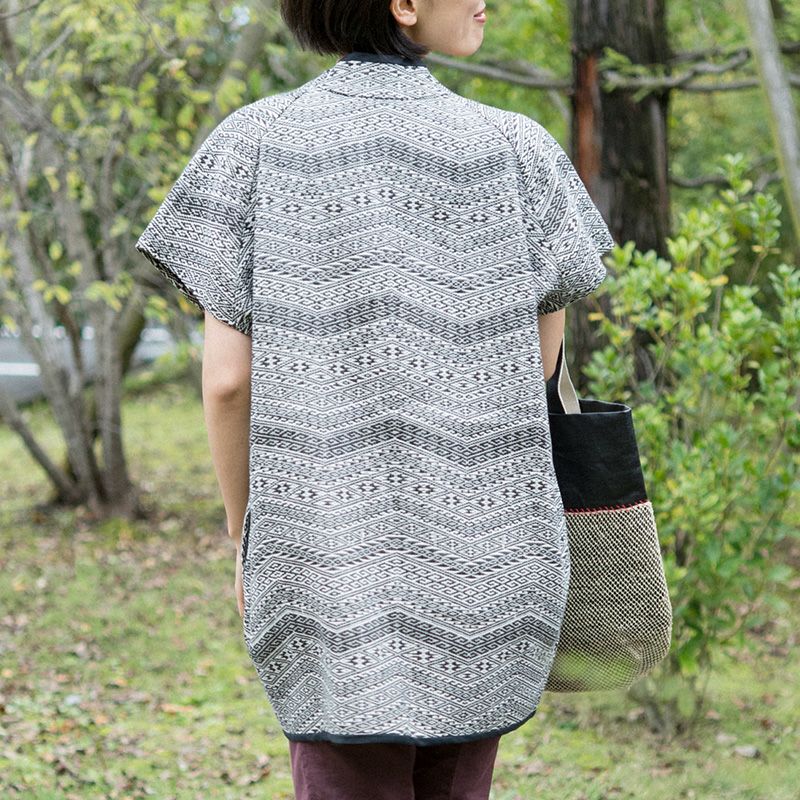 手織りによって伝統的な浮織が施されたリネンの生地を贅沢に使用したコートです。