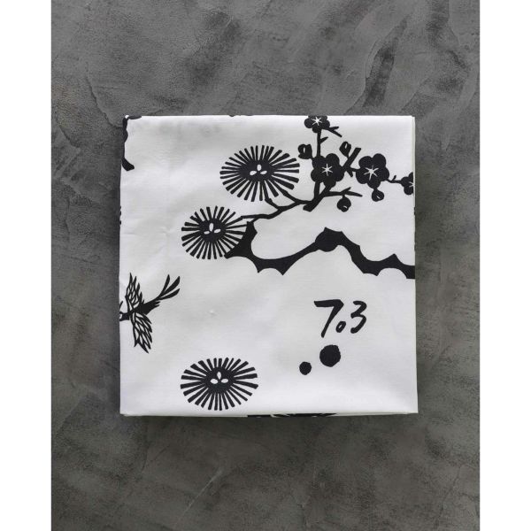 “奈良と沖縄、それぞれの土地で培われてきた文化的価値を再発見する”というコンセプトから、琉球紅型によく用いられる菊や松、梅、筏などを配置し、その中に奈良の鹿や正倉院文様に用いられる花食い鳥・蔓をあしらいました。