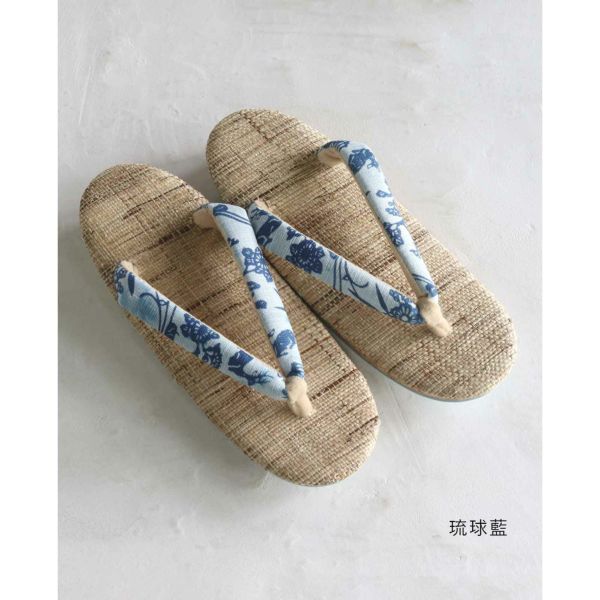 麻100%の太布が涼しげな印象の天板と紅型染めの花緒を使ったレディース雪駄です。