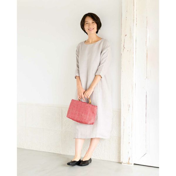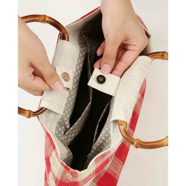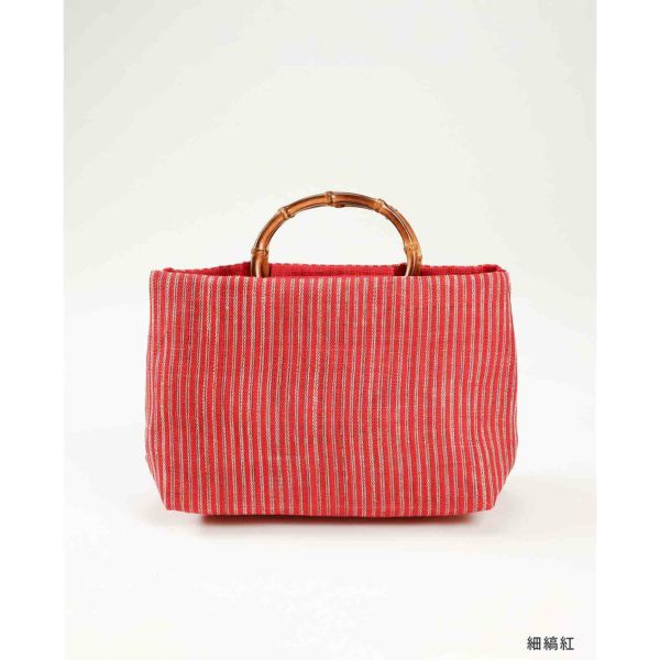 縞や格子の柄に織り上げた麻と竹手を使ったハンドバッグです。